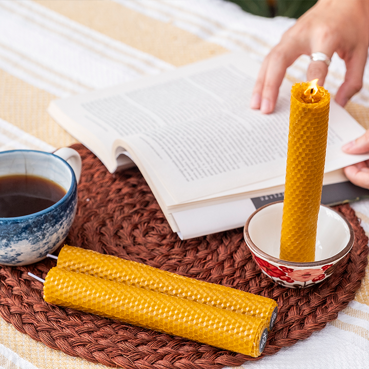 Nuestra vela artesanal elaborada con cera de abejas 100% natural, recolectada de las colmenas.